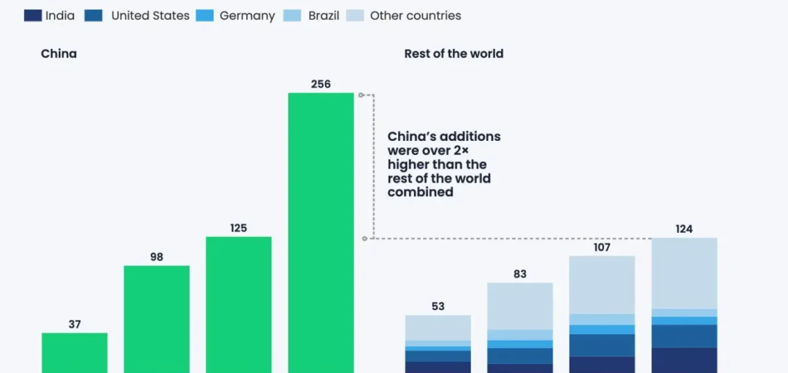 Globalne instalacje solarne ponownie biją rekordy w 2025 roku. W pierwszej połowie 2025 roku świat dodał 380 gigawatów (GW) nowej mocy słonecznej – oszałamiający skok o 64% w porównaniu z tym samym okresem w 2024 roku, kiedy to 232 GW pojawiło się w sieci energetycznej.